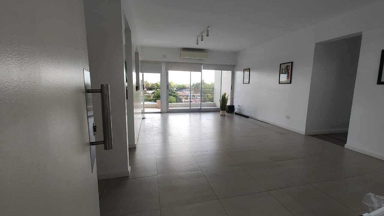 Hermoso departamento de 4 ambientes, desarrollado en una planta, muy luminoso. Posee un living comedor, con salida a gran balcón aterrazado, con parrilla propia, con vista abierta. Cuenta con una cocina , con doble acceso, la misma tiene espacio de guardado de alto y bajo mesada . Cuenta con una preciosa barra desayunadora de marmol y tiene espacio para lavavajilla. La cocina tiene salida al balcón. Lavadero separado. El departamento tiene tres dormitorios, el principal con baño en suite, con gran ventanal y amplio placard. Los otros dos cuartos cuentan con amplios placares empotrados . Desde ambos dormitorios se accede a un segundo balcón aterrazado grande. Lo que hace una propiedad cómoda y muy funcional. Posee un segundo baño completo. Pisos: Porcelanato claro y en los cuartos porcelanato simil madera. Aires acondicionados: 4. Caldera dual, Losa radiante independiente en toda la casa. Expensas:$515.000 (incluye aysa e imp municipal). Posee cochera cubierta y baulera. Se destaca por su luminosidad, funcionalidad con varias vías de acceso, su impecable estado y vistas abiertas. Amenities: pileta, SUM, gym, guarderia, laundry, jardines de uso común,plaza para los niños, seguridad 24 hs. Ideal para quien le gusta la naturaleza, pues el Complejo cuenta con diversos espacios al aire libre. Importante: Excluyente : se pide seguro de caución.