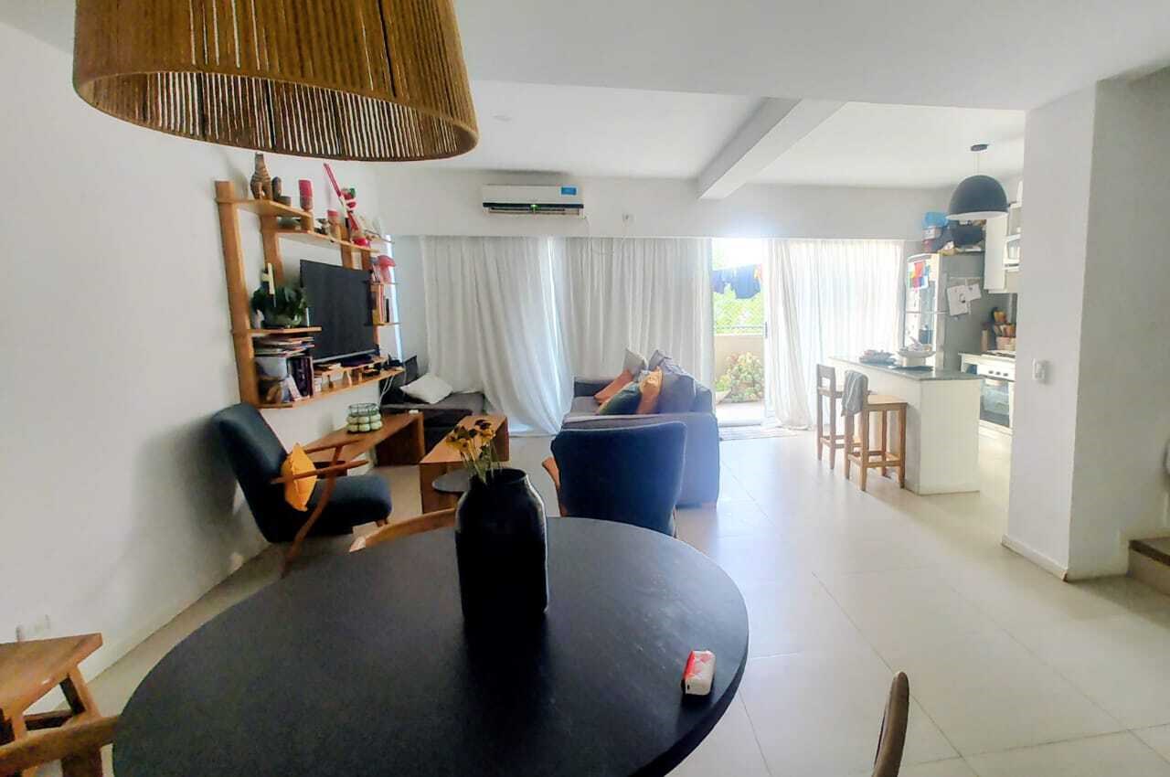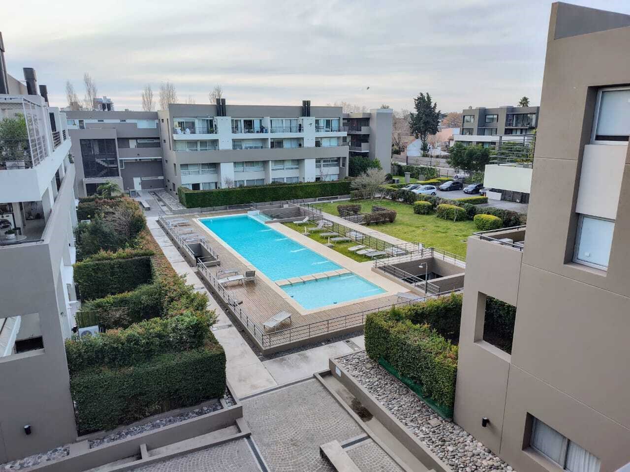 Hermoso departamento de 4 ambientes, desarrollado en dos plantas, tipo duplex, muy luminoso. Posee un living comedor con cocina semiintegrada, tiene espacio de guardado de alto y bajo mesada . Cuenta con una preciosa barra desayunadora de marmol el living tiene salida a gran balcón aterrazado, con parrilla propia, con vista abierta. La cocina tiene salida al balcón, con espacio para lavarropa. El departamento tiene tres dormitorios, el principal con baño en suite. Los otros dos cuartos cuentan con amplios placares empotrados . ambos comparten un segundo baño completo. Cuenta con una segunda terraza en la planta alta. Pisos: Porcelanato claro y en los cuartos porcelanato simil madera. Aires acondicionados: 4. Caldera dual, Losa radiante independiente en toda la casa. Expensas:$490.000 (incluye aysa e imp municipal). Posee cochera cubierta en el subsuelo. Tiene la mejor orientación norte y una de sus terrazas es orientación sur con una vista inmejorable al pulmón de manzana del Complejo. Se destaca por su luminosidad, funcionalidad con varias vías de acceso. Amenities: pileta, SUM, gym, guarderia, laundry, jardines de uso común,plaza para los niños, seguridad 24 hs. Ideal para quien le gusta la naturaleza, pues el Complejo cuenta con diversos espacios al aire libre.