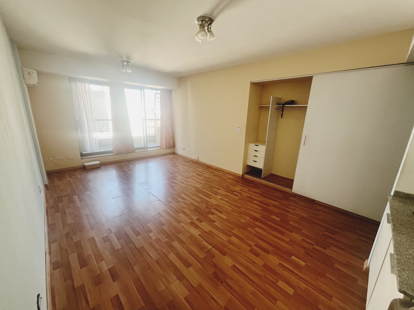Amplio ambiente con pisos de madera y con placard